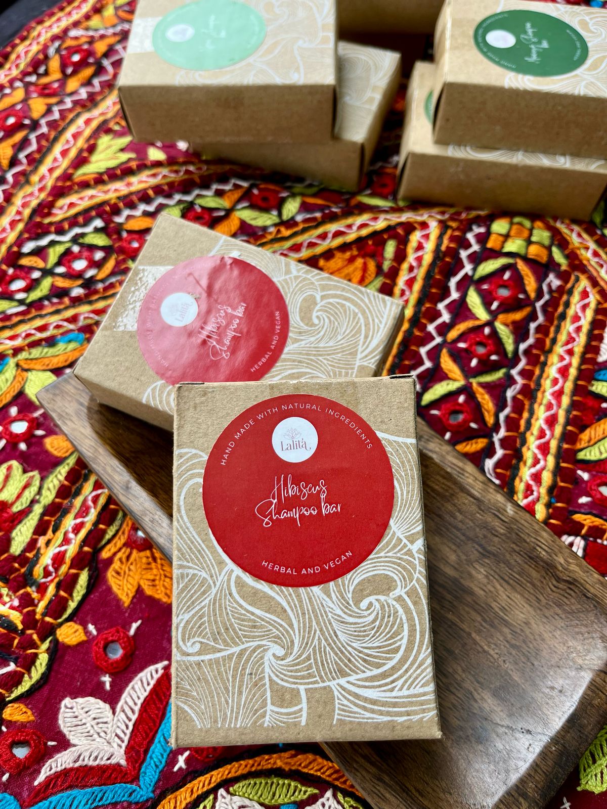 Made with the goodness of hibiscus, herbs, natural oils , plant based butters and pure essential oils. None of the harsh chemicals, fragrances and preservatives used in standard soaps. The shampoo bars are vegan, cold processed and done in small batches. Our herbal hair wash soap brings the goodness of our customer favorite herbal hair wash, in an easy to use form.