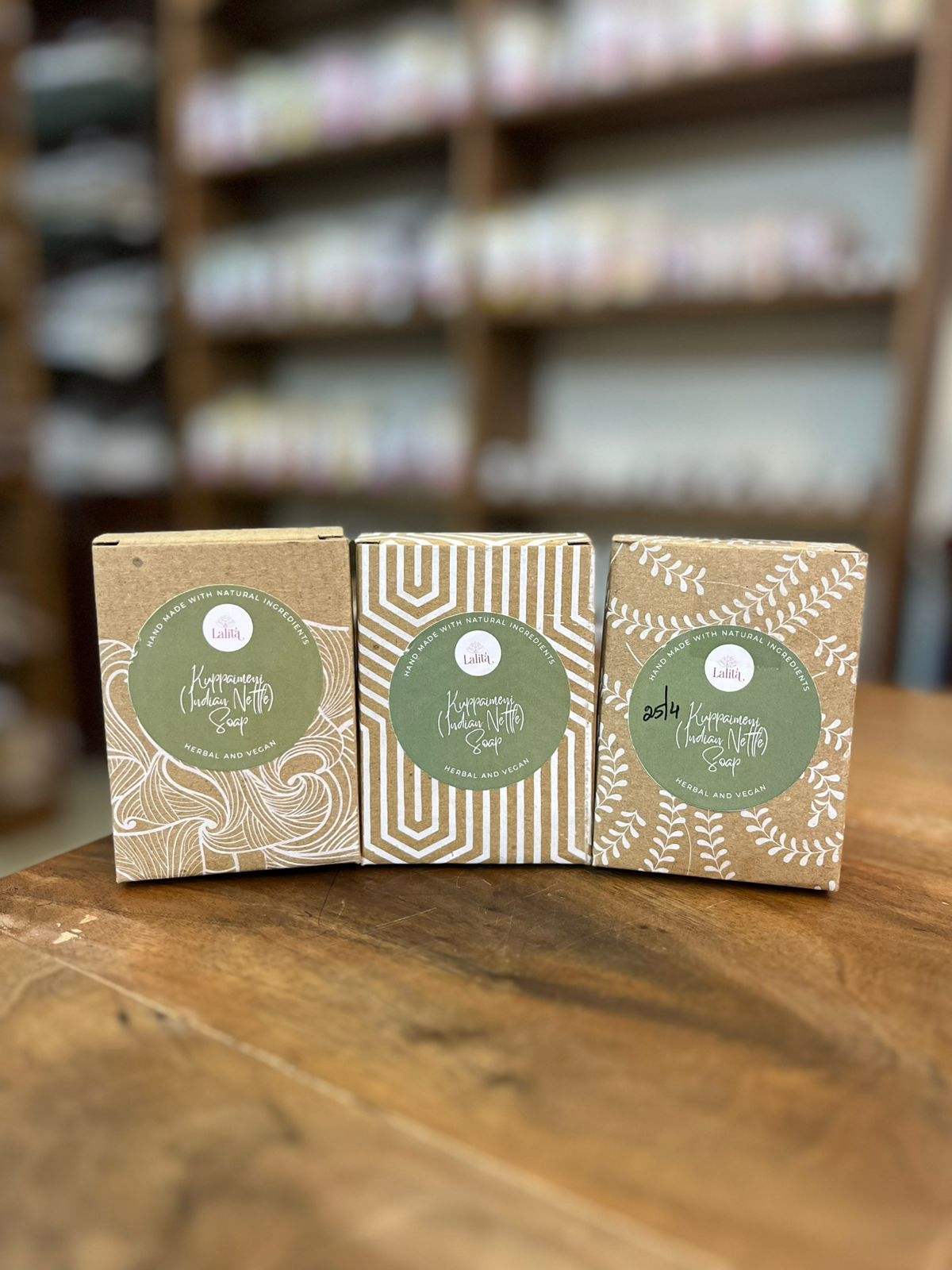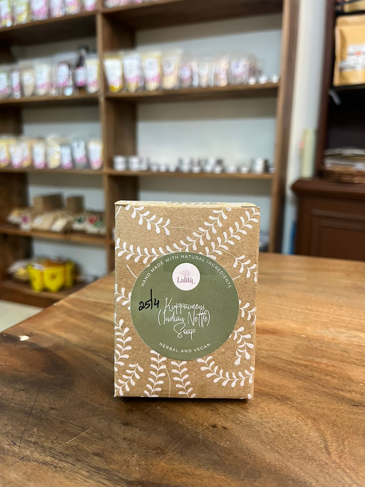The goodness of our Kuppameni/Indian Nettle - in a convenient easy to use soap form. Made with the goodness of multani mitti, Kuppameni powder, natural oils , plant based butters and pure essential oils. None of the harsh chemicals, fragrances and preservatives used in standard soaps. The soaps are vegan, cold processed and done in small batches.